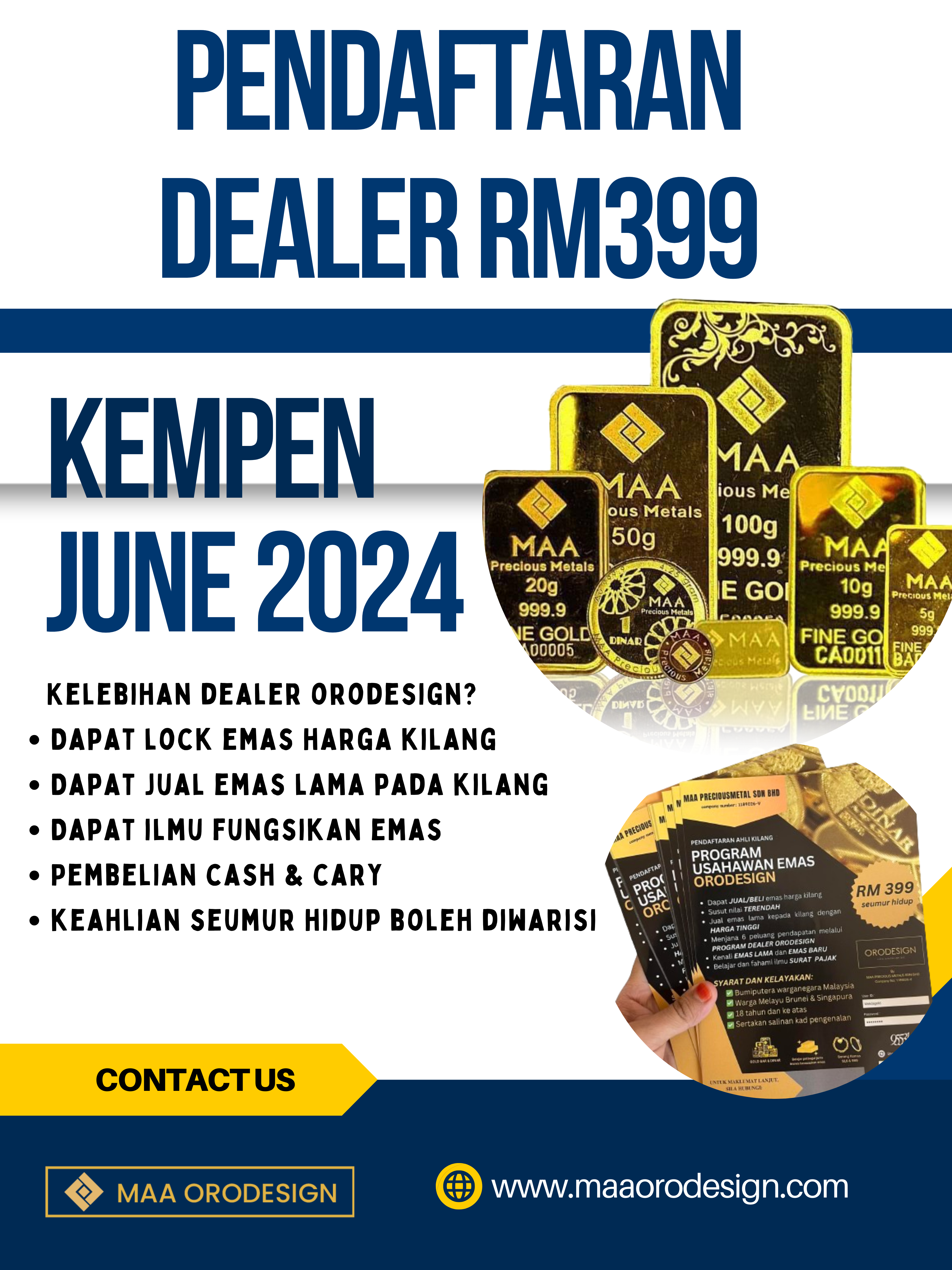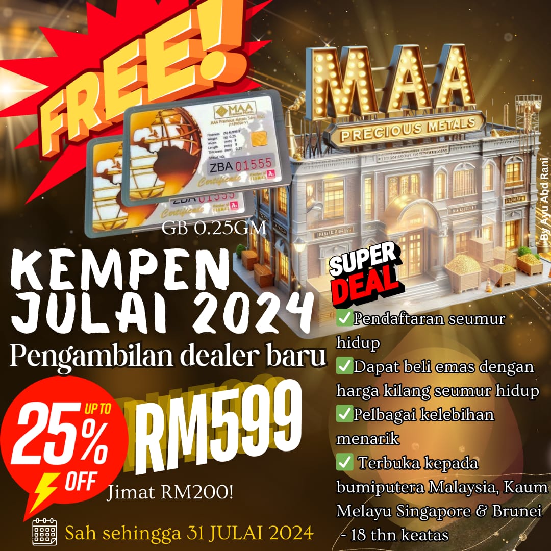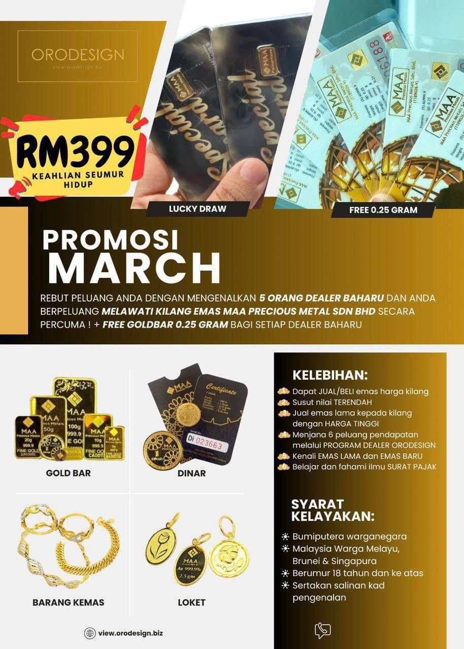 Untuk Dealer; Bonus pengenalan RM 150 Bonus belian RM 1/gram utk setiap belian dealer yg kita kenalkan. Cabutan bertuah 50keping 1gram Edition Special Reward dari HQ